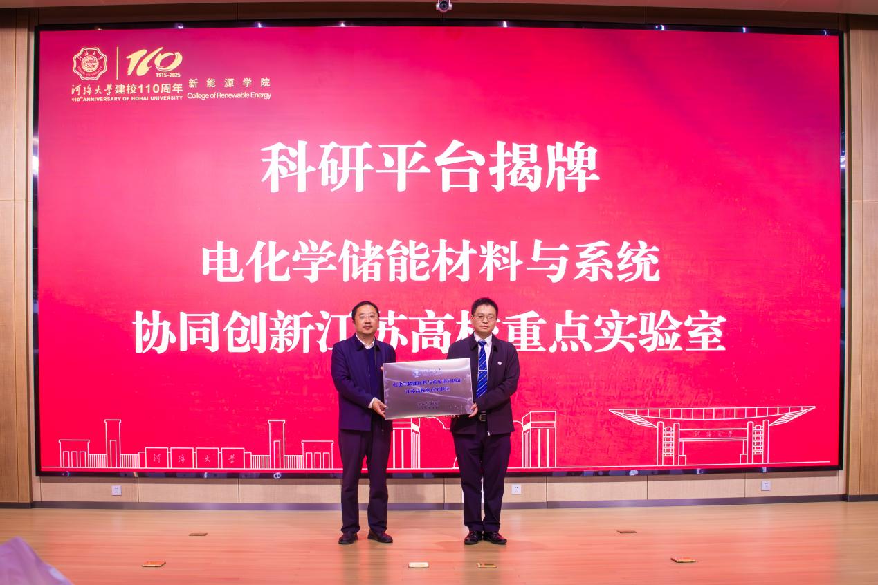 在热烈的氛围中,大会进入科研平台揭牌环节。副校长吴峰为“电化学储能材料与系统协同创新省高校重点实验室”揭牌。院长许昌为“河海电能技术创新研发中心”“河海—华高新—湛新树脂联合实验室”“湛新树脂—必赢网址先进电池技术国际联合实验室”等科研平台揭牌。